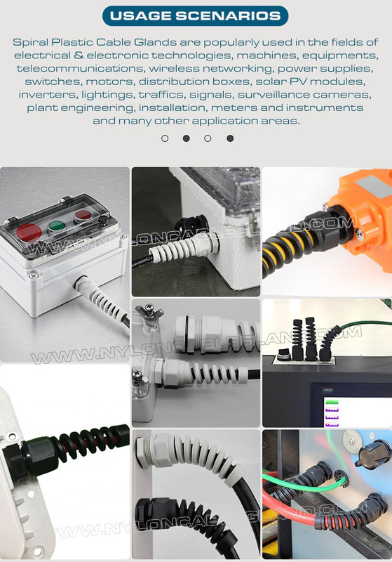 【Amplia aplicación】 los prensaestopas en espiral con alivio de tensión se utilizan ampliamente en la fijación de cables, conexiones de cajas de conexiones, paneles de distribución, gabinetes eléctricos y otros aparatos eléctricos. El prensaestopas es fácil de instalar sin necesidad de desmontarlo.