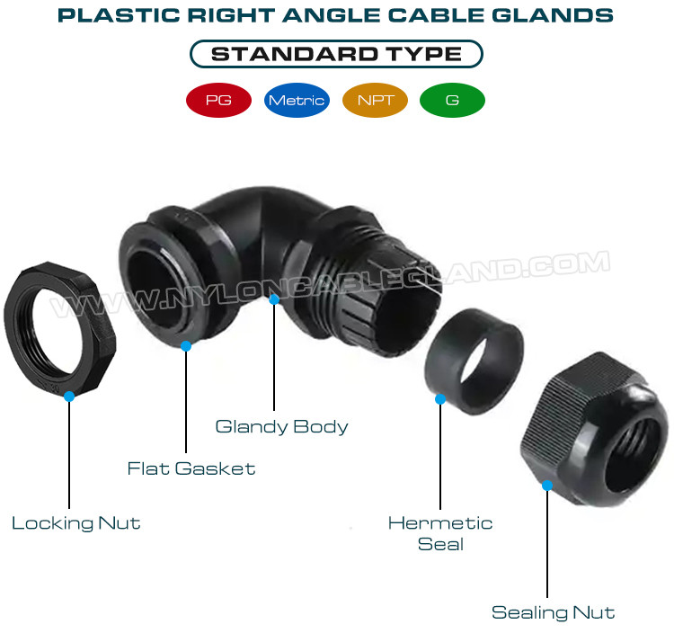 | Nombre del producto: | Prensaestopas herméticos en codo 90°, prensacables eléctricos impermeables en ángulo recto IP68 con roscas PG y métricas |