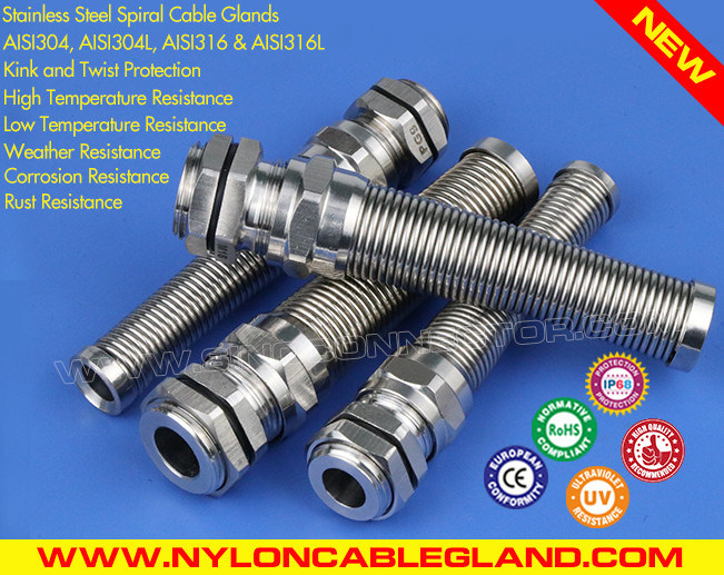 Con ventajas de alta resistencia al impacto y amplio rango de sujeción, resistencia a altas y bajas temperaturas y resistencia a la intemperie, los prensaestopas herméticos para cables métricos IP68 M12~M50 de acero inoxidable tipo 304/316/316L con protección contra torceduras y dobleces vienen con un resorte protector en espiral adicional. y tiene la capacidad de resistencia química, resistencia a la corrosión y resistencia al calor, y también tiene la capacidad de alta resistencia a la tracción, alta tenacidad, buena resistencia al agua, excelente protección contra la flexión y largo tiempo de servicio.